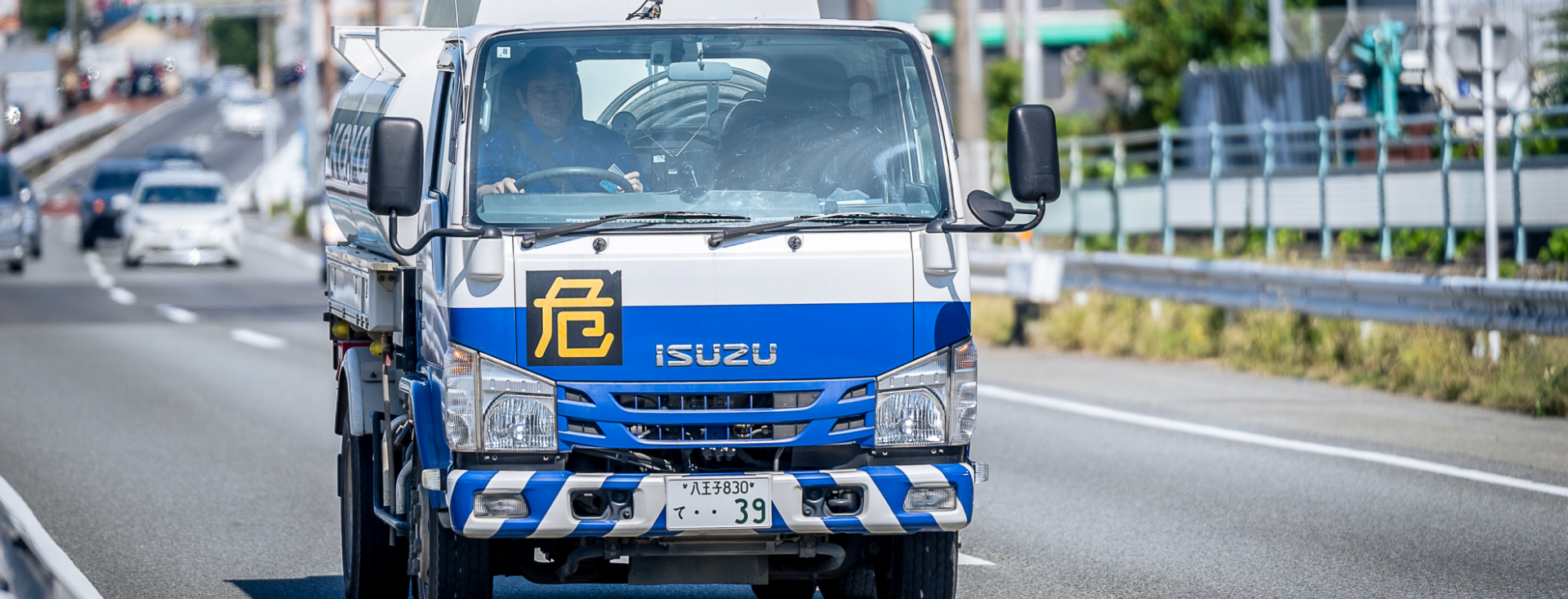 小型タンクローリーの現場配送だけでなく、の他大型車・大型トレーラーを配備し、